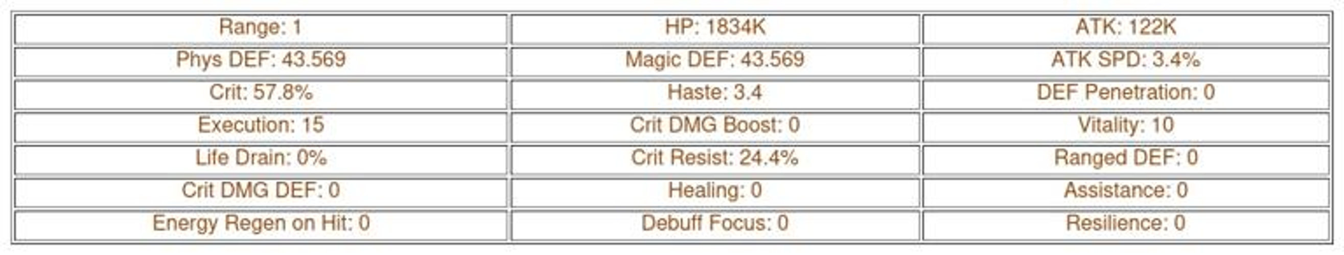 Finally, if Salazer’s health drops below a certain threshold at the beginning of a fight, Guardian Shield activates, granting him a protective barrier to withstand incoming attacks. This combination of offensive prowess and defensive resilience makes Salazer a strategic asset in any confrontation.Salazer employs a formidable skill set centered around swift, high-impact attacks and strategic imprisonment tactics. His primary offensive move involves summoning a series of airborne swords that strike the most resilient enemy up to eight times in succession. Each strike inflicts 30% of Salazer’s attack power plus an additional damage component calculated as 5% of the enemy’s current health, with the total damage capped at 150% of Salazer’s attack value.
