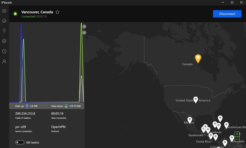 - IPVanish: Known for its speed and simplicity, IPVanish provides a wide selection of Canadian servers suitable for streaming and torrenting. It is also the most affordable monthly subscription on our list.