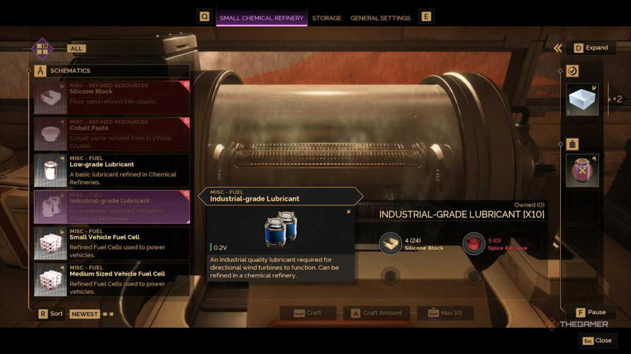 Creating industrial-grade lubricant in Dune: Awakening involves a more complex process due to the necessity of spice as a key ingredient.