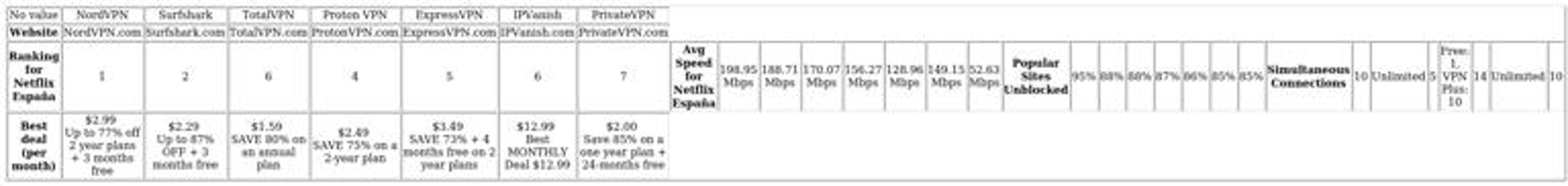 The following VPNs are generally unable to access Netflix Spain reliably: