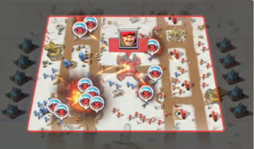 The missile site periodically becomes accessible; capturing it provides a significant combat advantage by unleashing devastating firepower. Throughout the fight, injured units can be healed instantly, allowing them to re-engage quickly. During combat, medical supplies are dropped intermittently to revive fallen units, and movement and troop return speeds are increased, facilitating rapid redeployment.