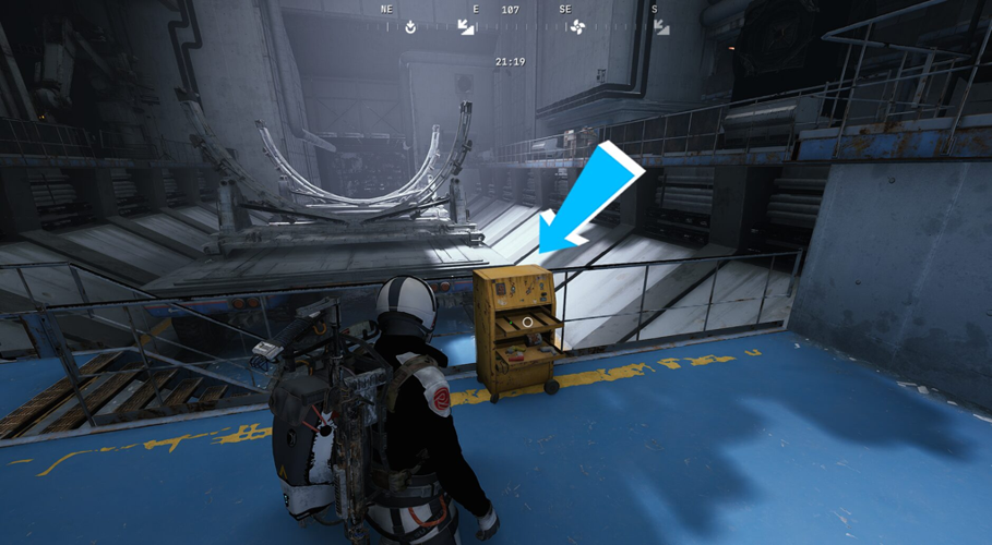 To locate Exodus modules efficiently, start by examining the primary assembly zone where yellow industrial tool-carts are stationed. These carts are usually placed close to the large rockets and frequently conceal valuable high-level loot, including Exodus modules.