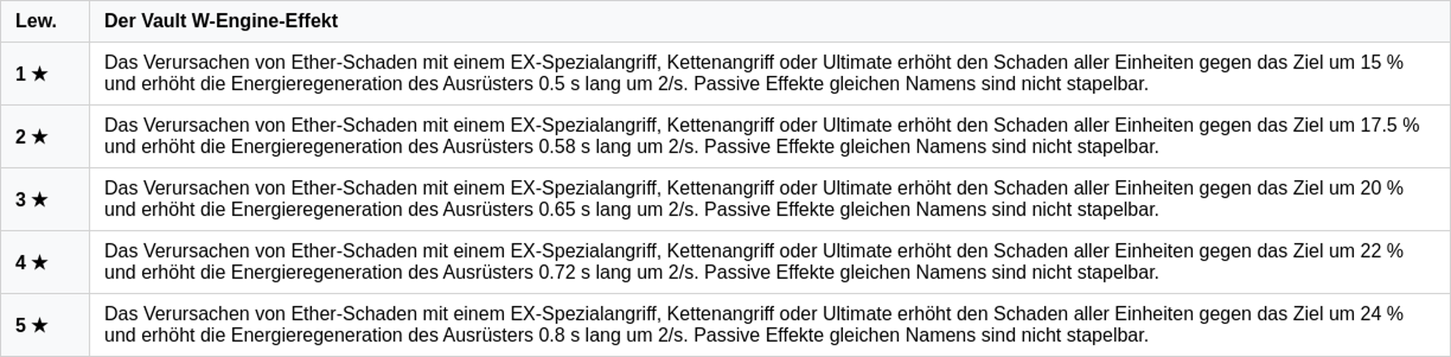 Jede Aktivierung erneuert die Dauer des Buffs, stapelt jedoch nicht den Schadens- oder Regenerationsbonus.